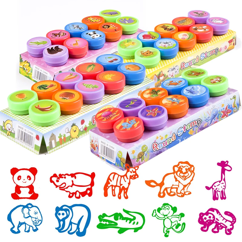 10pcs Assorted Stamps For Kids Toys Educational Animal Self Ink Stamps Kids Party Favors Children Stamp Set 3 Years Toddler Toys