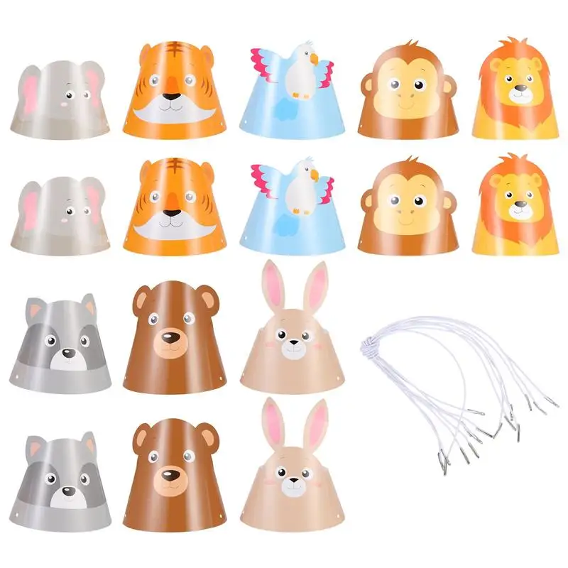 16pcs Animal Headband Hats Jungle Animal Theme Birthday Party Hats For Kids Party Decoration Accessories
