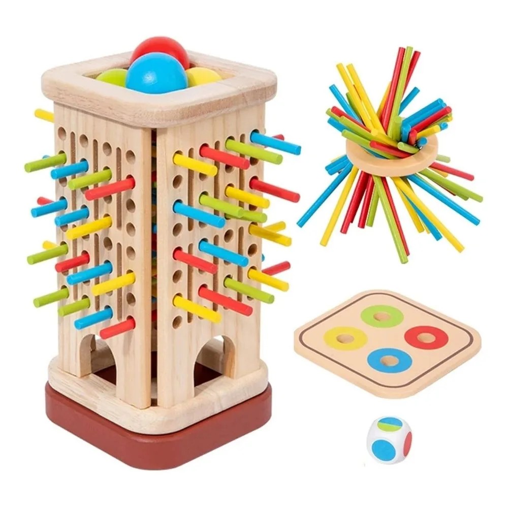 Montessori Wooden Stick Game for Kids | 32 Colourful Sticks with Dice & Wooden Box | Fine Motor Skills Toy