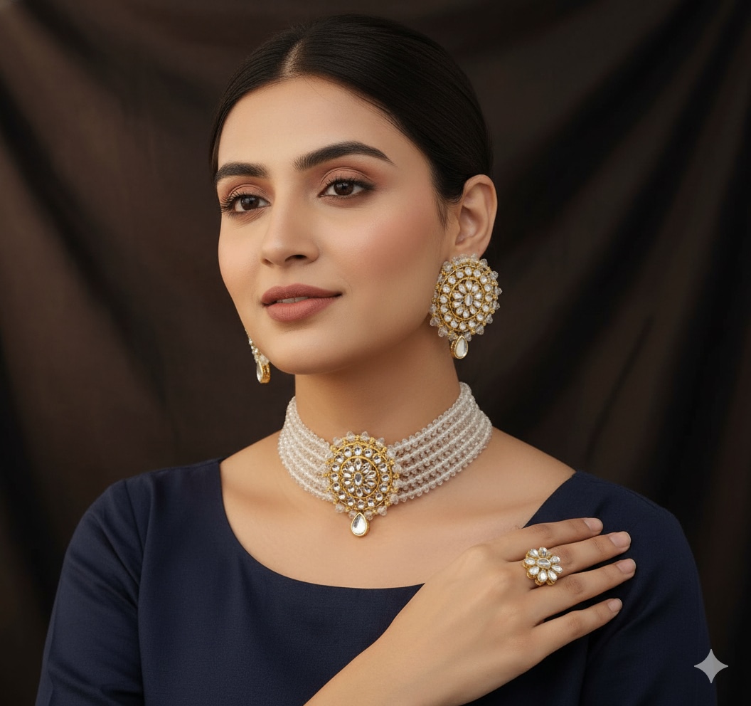 Crystal Kundan Huge Stylish Festive All Occasions Choker Jewellery Set