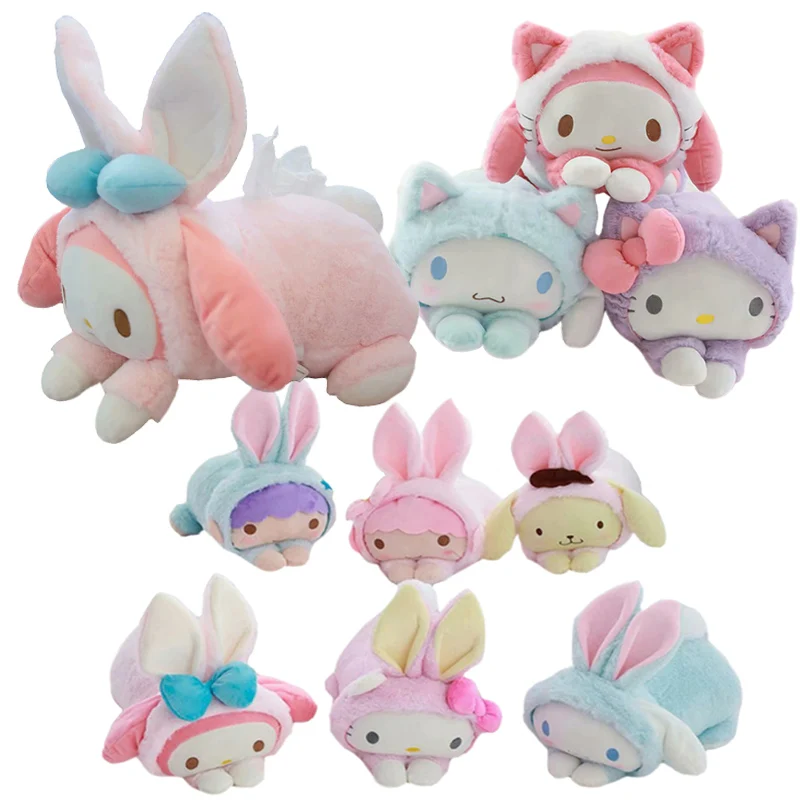 32*20cm Cartoon Transform Kitty/whit dog Warmer plush Cushion/Pillow Cute Melody/KT/Pig Tissue Box Kids/Girl Birthday Gifts