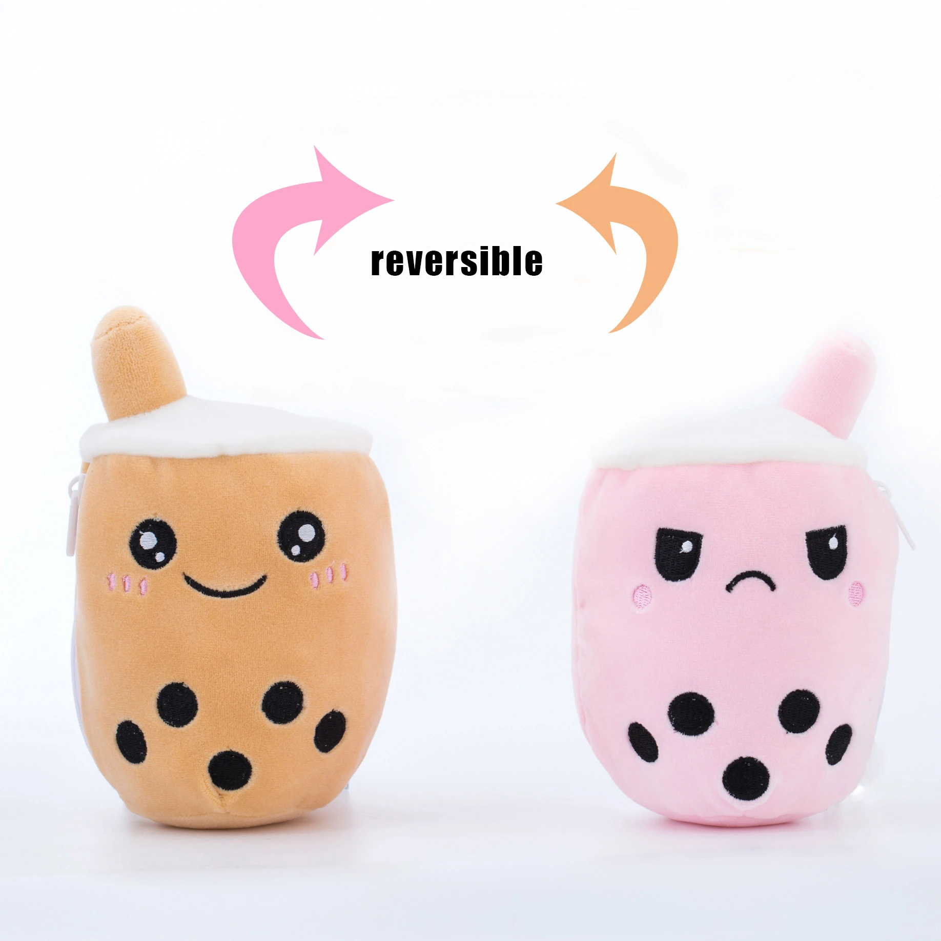 15/25cm Flip Reversible Bubble Tea Juice Cup Plush Toy Stuffed Colorful Emotional Drink Happy Angry Decoration Prop Dropshipping