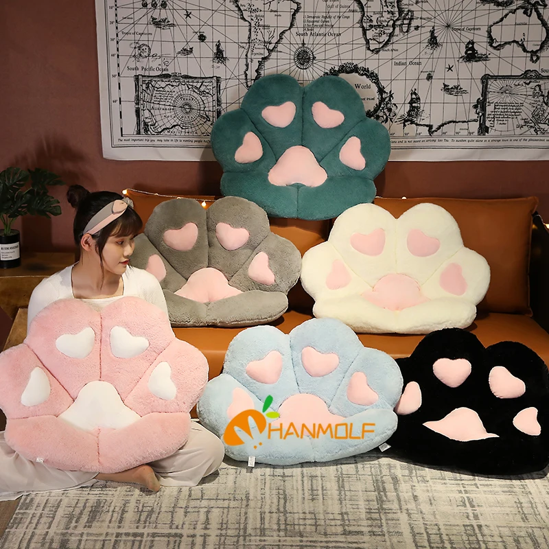 2 Sizes Cat Bear Paw Plush Seat Cushion Indoor Floor Stuffed Sofa Colorful Animal Decor Pillow for Children Grownups Gift